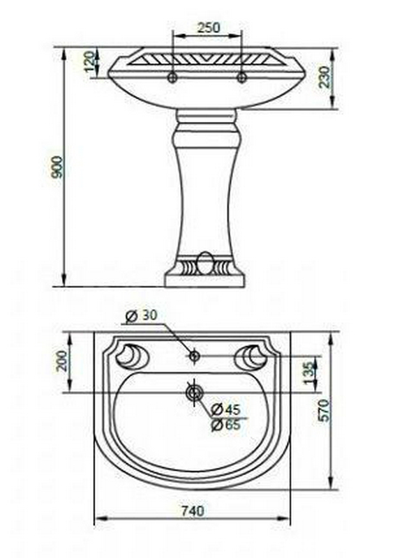Раковина подвесная Cezares King Palace Раковина 700х570мм, 1 отв. д/смес., с бортиком, установка на пьедестал, King Palace ZZ