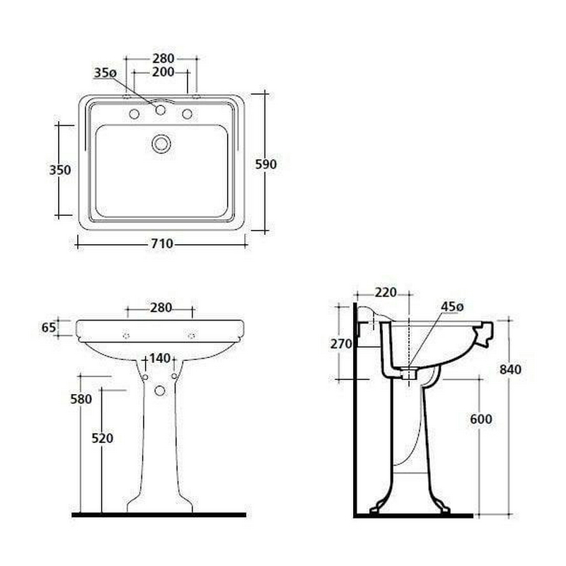 Раковина подвесная Galassia Ethos Раковина 71х59хh27см, 3 отв. для смесит., Ethos ZZ
