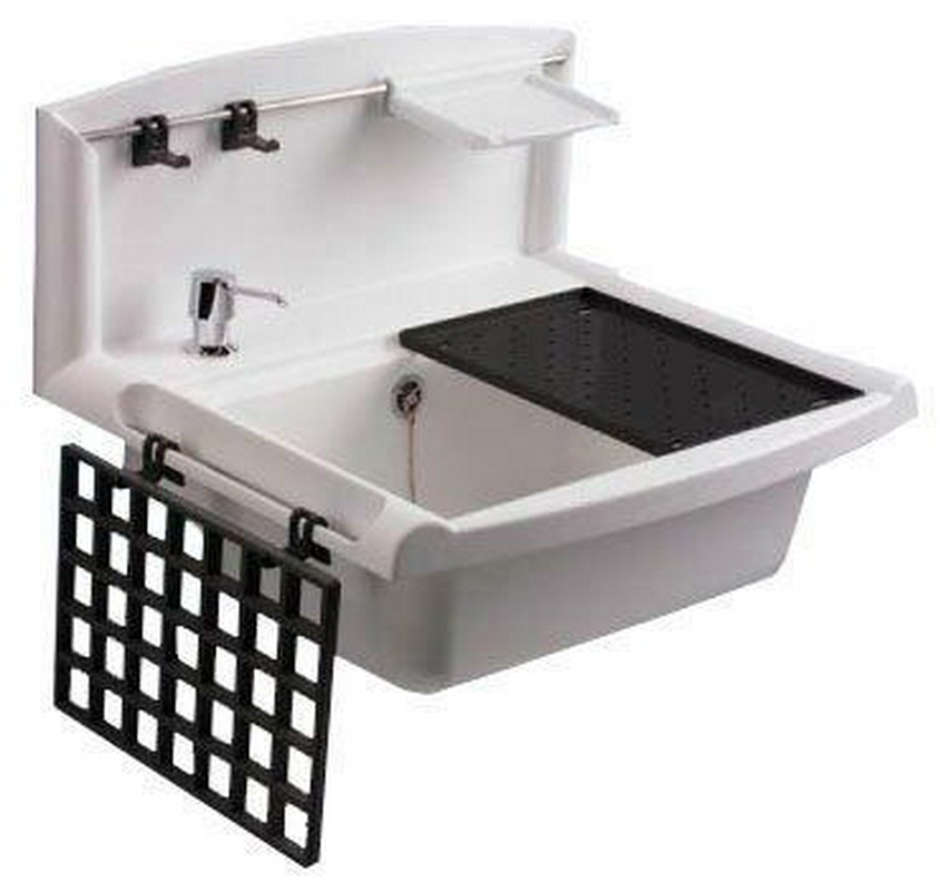 Раковина подвесная Sanit Мойки Мойка многофункциональная, уличная 550х450хh413мм, слив-перелив 1 1/2, без сифона, решётка, мыльница, 2 крючка в компл., (прочный полимер цв.белый),XX