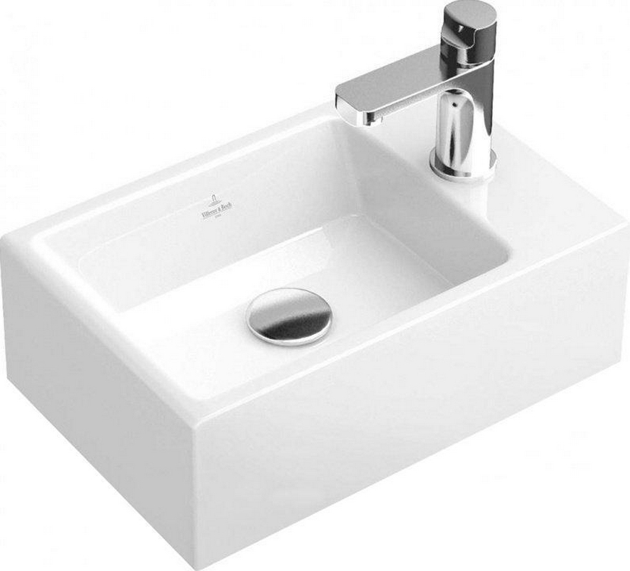 Раковина подвесная Villeroy & Boch Memento Раковина 400х260хh140мм, для устан. на мебель, 1 отв. д/смес справа, без перелива, крепеж, шаблон в компл, (цв. R1 White cer+), Memento ZZ