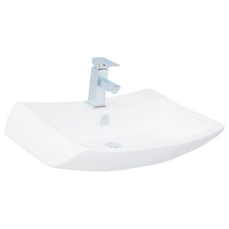 Раковина подвесная/накладная на столешницу, прямоугольная, 650х480хh160мм, с 1 отв.д/смесит., с переливом, без крепл., (цв. белый), Quadro