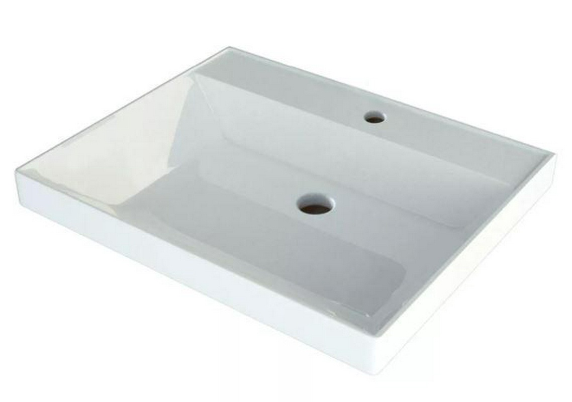 Раковина подвесная/накладная на столешницу, прямоугольная, 650х480хh160мм, с 1 отв.д/смесит., с переливом, без крепл., (цв. белый), Quadro