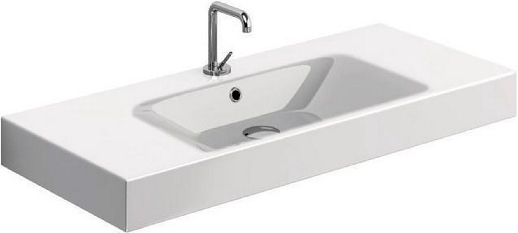 Раковина подвесная Kerasan Cento Раковина 100х45хh10см, подвесная / накладная, с 1 отв.д/смес., с переливом, без крепл., Cento ZZ