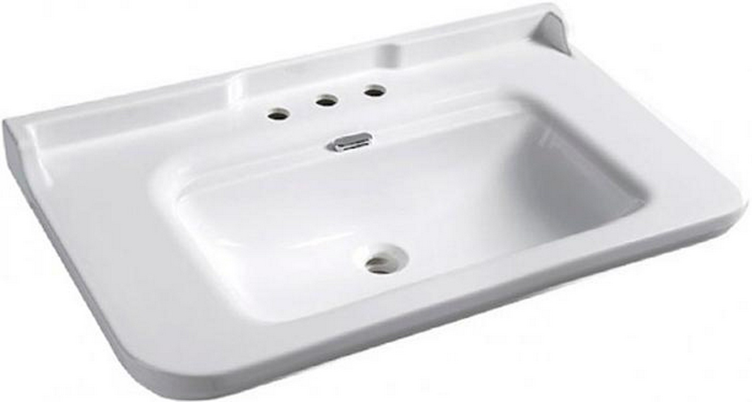 Раковина 100х55см, с 3 отв.д/смес., с переливом, без креплений к стене, заглушка отверстия перелива цв.хром в компл., ZZ Kerasan Waldorf 4142K1bi/cr*3