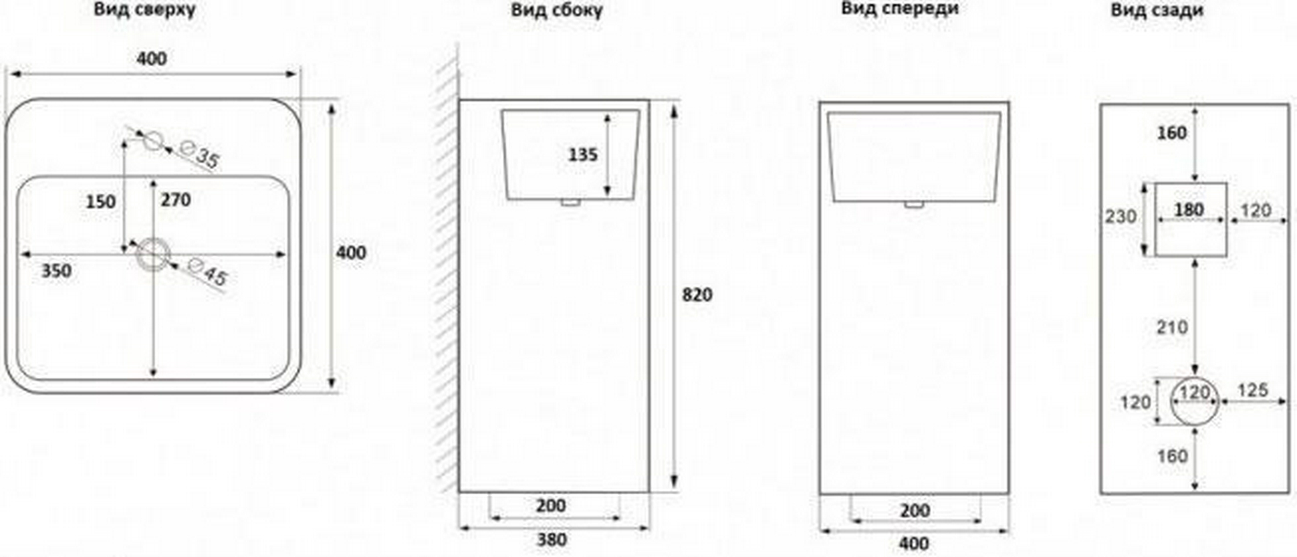 Раковина напольная Ceramalux Ceramalux Раковина прямоугольная напольная 40 х 40 х h83,5 см, цв.черный матовый ZZ