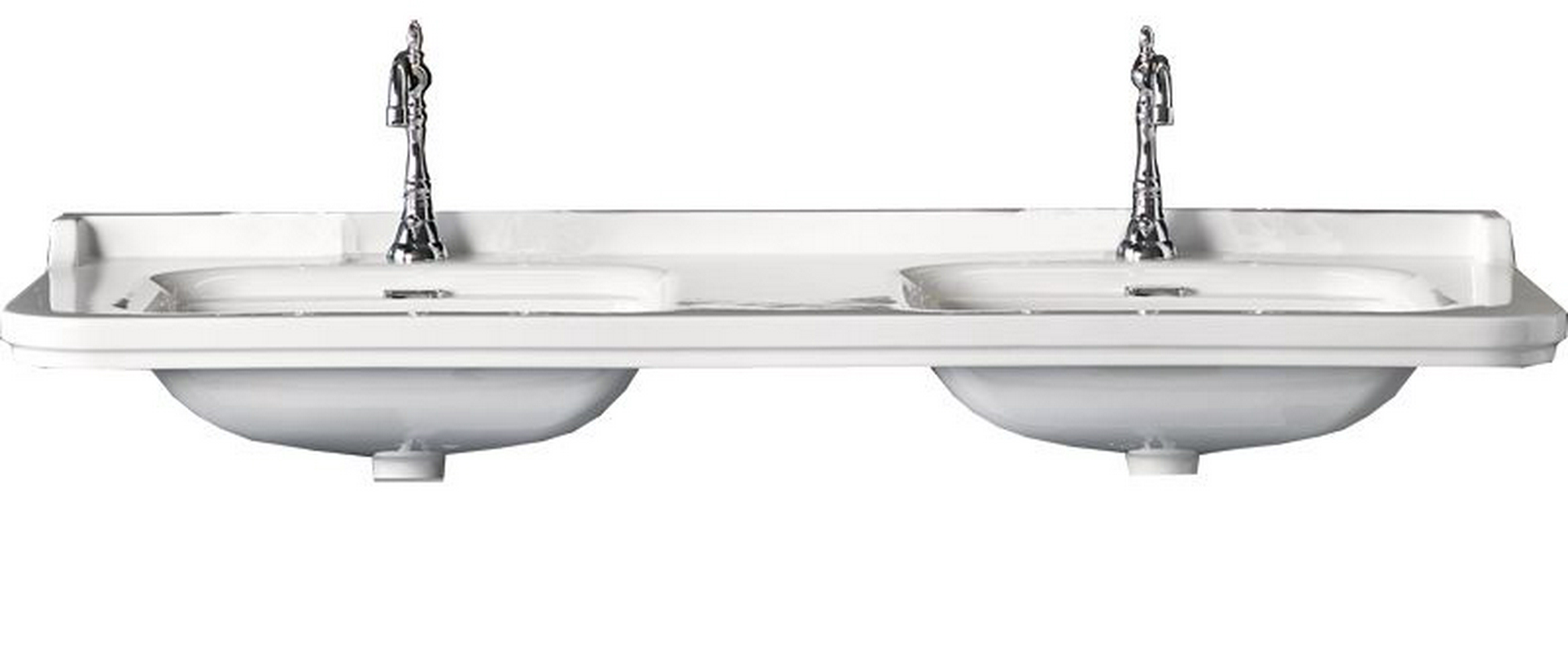 Раковина 150х55см, двойная, по 1 отв.д/смес., накладки отверстий перелива цв.хром в компл., без крепл.к стене, ZZ Kerasan Waldorf 4143K1