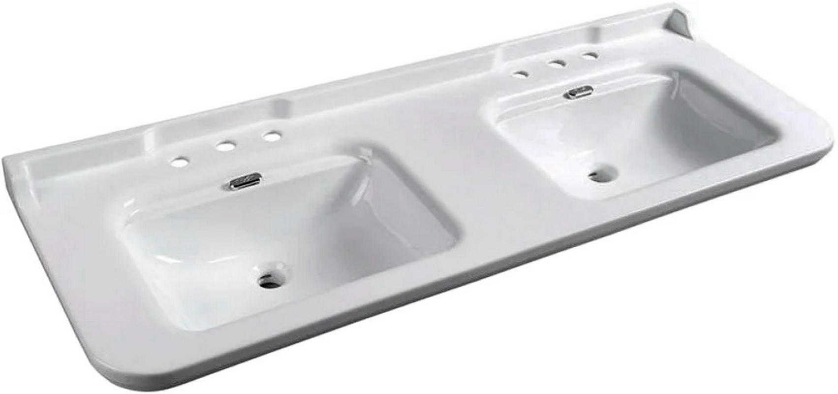 Раковина 150х55см, двойная, по 3 отв.д/смес., накладки отверстий перелива цв.хром в компл., без крепл.к стене, ZZ Kerasan Waldorf 4143K1bi/cr*3