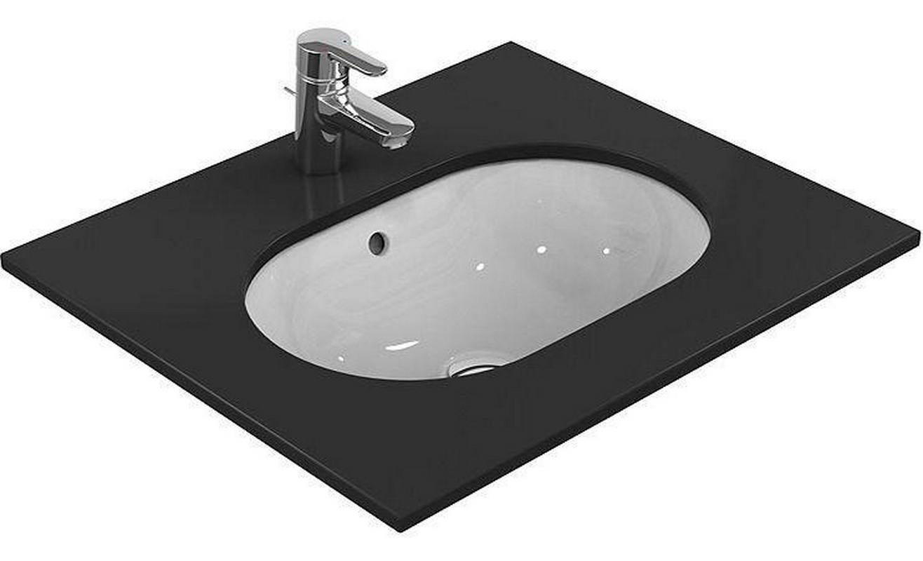 Раковина встраиваемая снизу Ideal Standard Connect Раковина для установки под столешницу, овальная 620(545)х410(335)хh175мм, без отв. д/смес., с переливом, шаблон, крепёж в комп., Connect ZZ