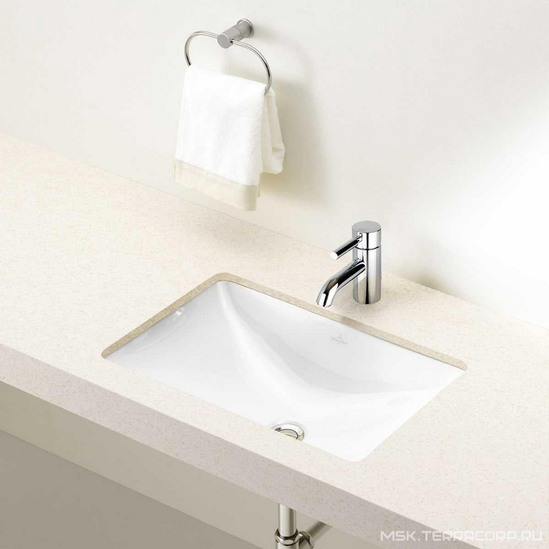 Раковина встраиваемая снизу Villeroy & Boch Loop & Friends Раковина встраиваемая снизу 615(675)х380(450)хh140(180)мм, удинён.рычаг для пробки д/к, крепёж в компл., (цв. 01 белый), Loop & Friends XX