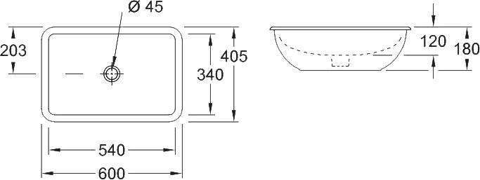 Раковина встраиваемая снизу Villeroy & Boch Loop & Friends Раковина встраив.снизу, прямоуг. 540(615)х340(405)хh120(180)мм, удинённый рычаг для пробки д/к, крепёж в комп,(цв.R2 Star white cer+)Loop & Friends KL