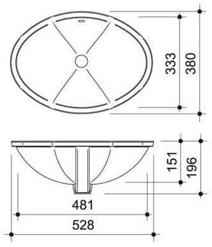 Раковина для установки под столешницу, овальная 49,5(56,5)х37,5(44,5)хh15,5см, Vouga ZZ