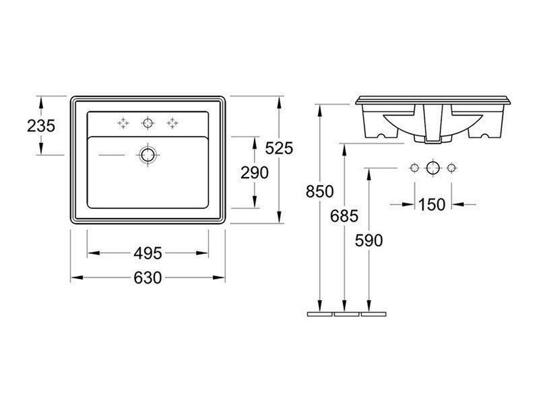 Раковина встраиваемая сверху Villeroy & Boch Hommage Раковина встраиваемая 630х525 мм, 3 отв. д/смес., (R1 white ceramicplus), Hommage ZZ
