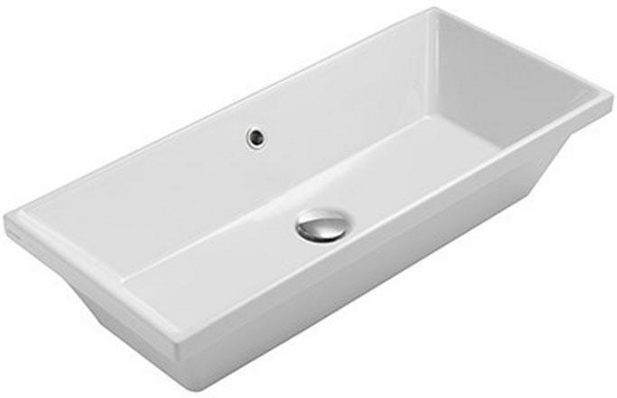 Раковина встраиваемая в столешницу сверху, прямоугольная 900х340хh30(170)мм, без отв.д/смесит., с переливом, ZZ Globo Stockholm FO090.BI