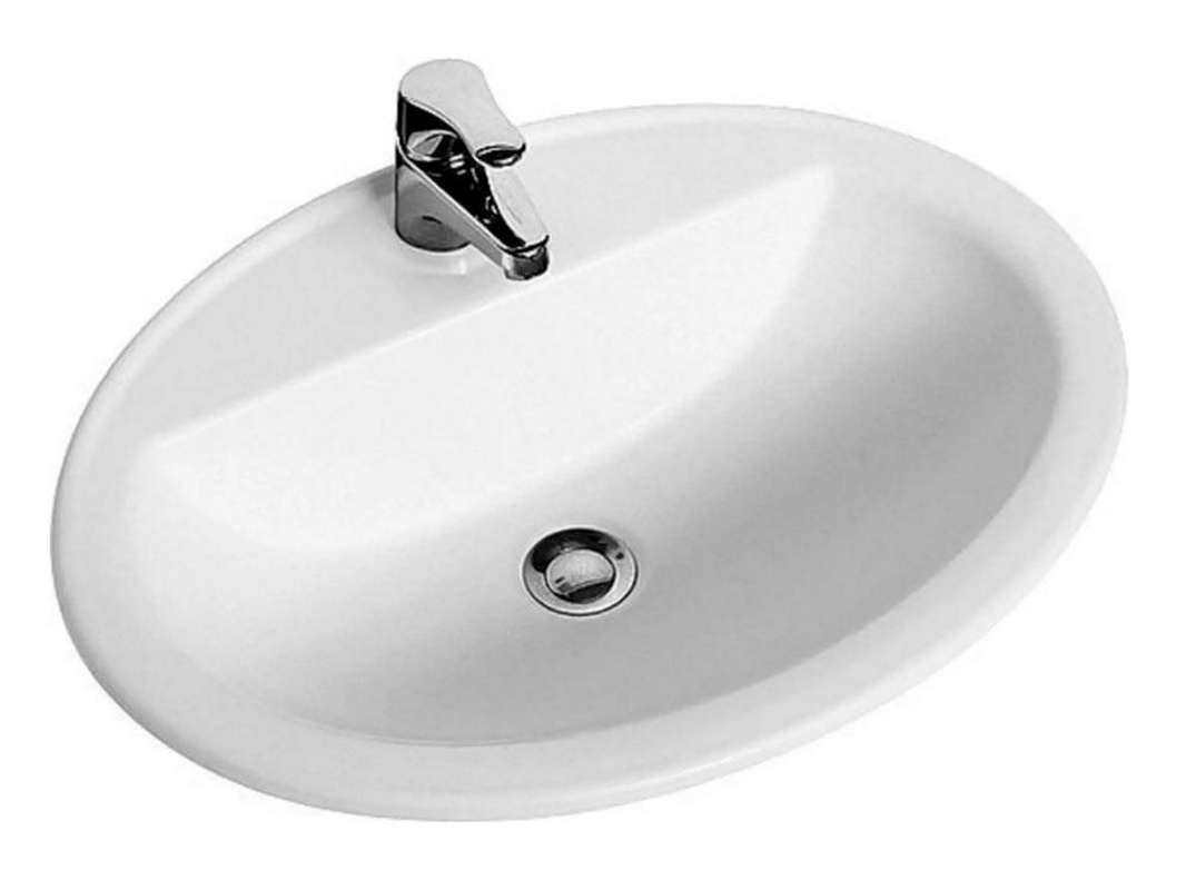 Раковина встраиваемая в столешницу сверху, овальная 565х480мм, с 1 отв.д/смес, с переливом, Sagres ZZ