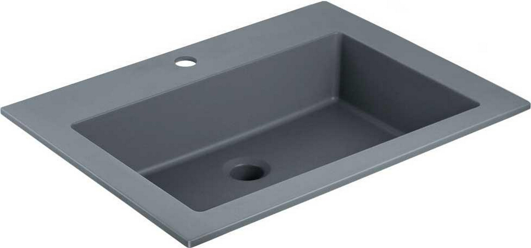Раковина встраиваемая сверху Vincea Универсал Раковина накладная на тумбу 600x480мм, с 1 отверстием для смесителя, без перелива, (кварцевый камень цв.серый), Vincea ZZ