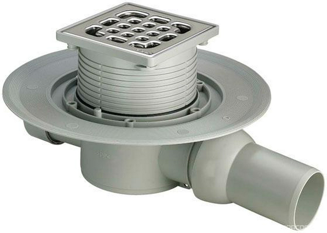 Дренажные канал, трапы Viega Универсал Трап, h=75мм, выход вбок DN 50мм, 0,9л/с, (пластик цв. серый), решетка из нерж.стали 100х100мм, в компл., Viega ZZ