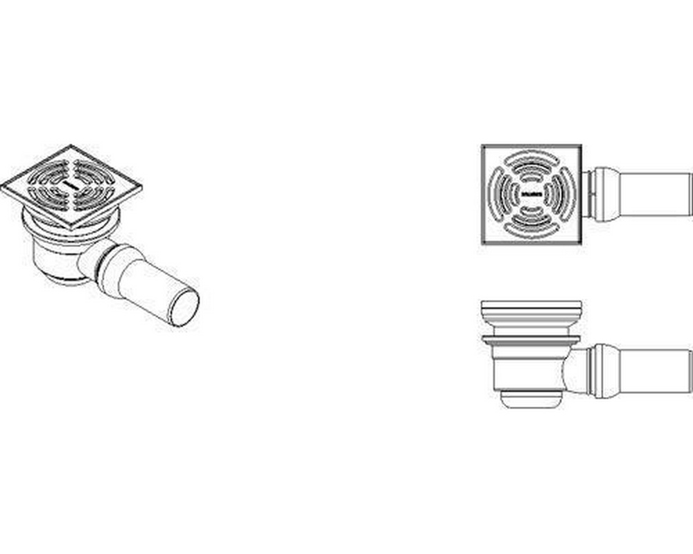Трап стандартный, выход горизонт.DN 50мм,0,80-1,17л/с, декор.решетка из нерж.стали 100х100мм, в комп,(без стакана с мембраной арт.3695005), Tece