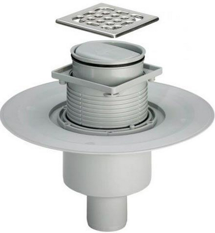 Дренажные канал, трапы Viega Универсал Трап с "Сухим" затвором, h=140мм, вертикальный DN 50мм, 0,4л/с, (пластик цв. серый), решетка и рамка из нерж.стали, 100х100мм, в компл., Viega ZZ