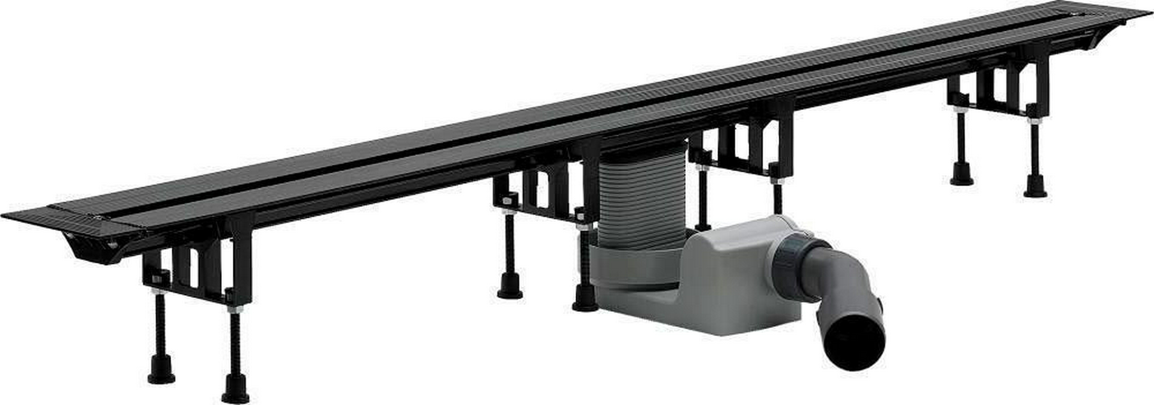 Дренажные канал, трапы Viega Advantix Vario Душевой лоток, корпус укорачиваемый L-300-1200мм, h 95–165мм, готовый комплект, (матовая дизайн-вставка нерж сталь, сифон, ножки), Advantix Vario ZZ