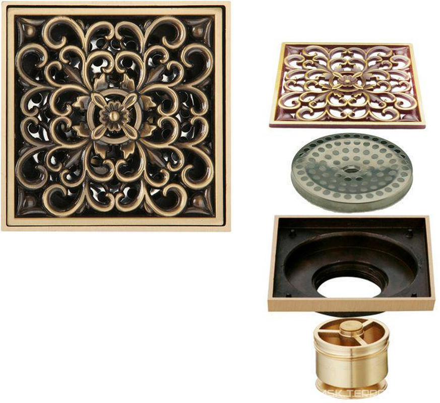 Дренажные канал, трапы Veragio Canyon Трап сливной CANYON d40, с декоративной решеткой 100х100 мм, с мех-м обратным клапаном, бронза XX