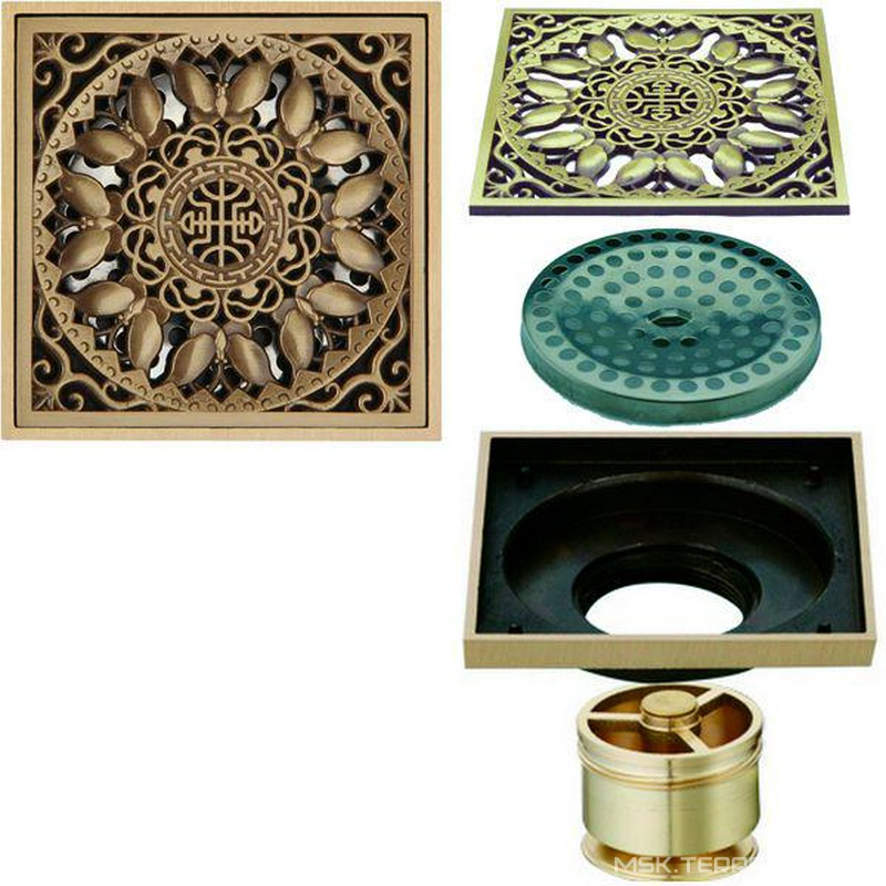 Дренажные канал, трапы Veragio Canyon Трап сливной CANYON d40, с декоративной решеткой 100х100 мм, с мех-м обратным клапаном, бронза XX