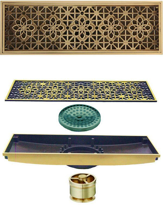 Дренажные канал, трапы Veragio Canyon Трап сливной CANYON d40, с декоративной решеткой 100х300 мм, с мех-м обратным клапаном, бронза KL