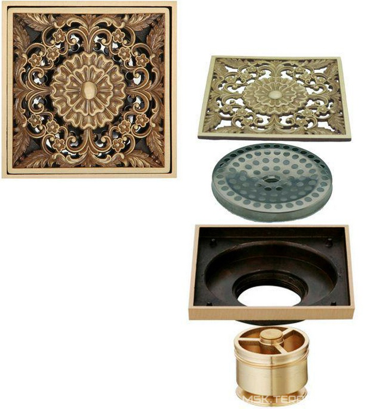 Дренажные канал, трапы Veragio Canyon Трап сливной CANYON d40, с декоративной решеткой 100х100 мм, с мех-м обратным клапаном, бронза XX