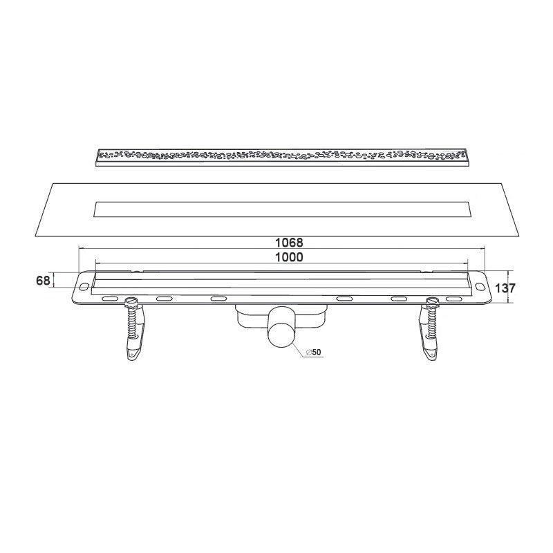 Дренажные канал, трапы Winkel Ekoline Дренажный канал в сборе, (сифон с гидрозатвором 0,4 л/с решетка PERLE 1000мм, нерж. сталь, монтажная глубина 65-105мм), WINKIEL/Ekoline ZZ