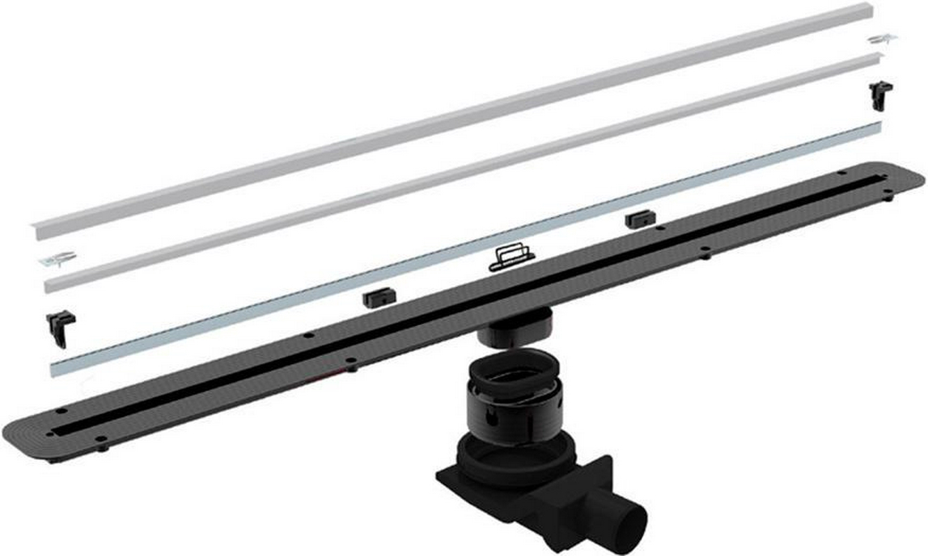 Дренажные канал, трапы Pestan Confluo Slim Line Дренажный канал 300хh82/120мм,готовый компл,сифон d50 выход вбок 48л/мин,ножки, ультратонкая дизайн-вставка (цв.мат.хром), Confluo Slim L ZZ