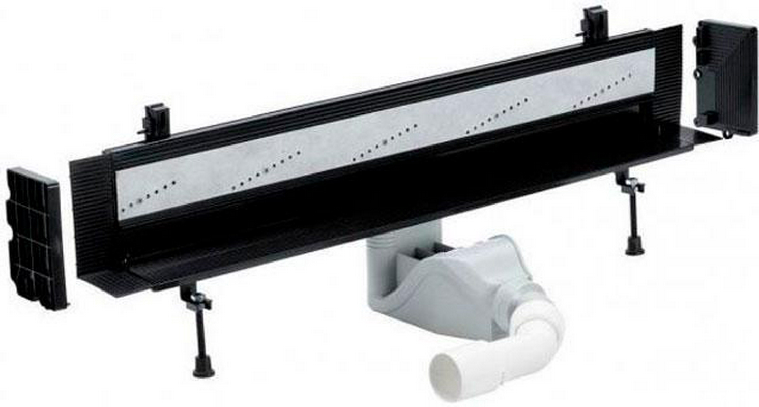 Дренажные канал, трапы Viega Advantix Vario Душевой лоток для встраивания в стену, проп. способность 0,45 л/с, L=300-1200, H=90-160, модель 4967.10, направл. выпуска -горизонт/боковое, сифон/опо