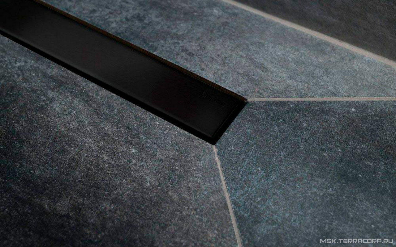 Дренажные канал, трапы Bettoserb Confluo Frameless Line Дренажн.канал 650мм, готов.компл, сифон d50 вых.вбок,48л/мин, затвор(сухой/гидро), мин h монтаж 62мм, 2х стор.вставка цв.черный мат/под плитку, CFL ZZ