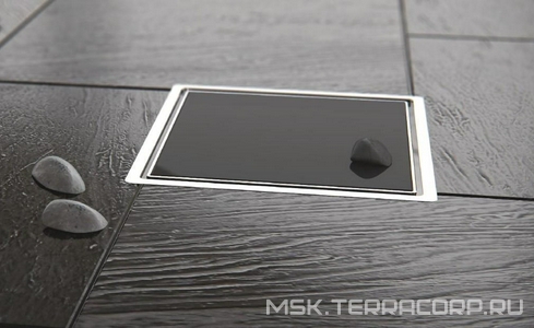 Дренажные канал, трапы Pestan Standard Dry Трап для душа, решетка 100х100мм (металл цв.золото глянец), выпуск гориз.50мм, Confluo Standard Dry 1 Gold ZZ