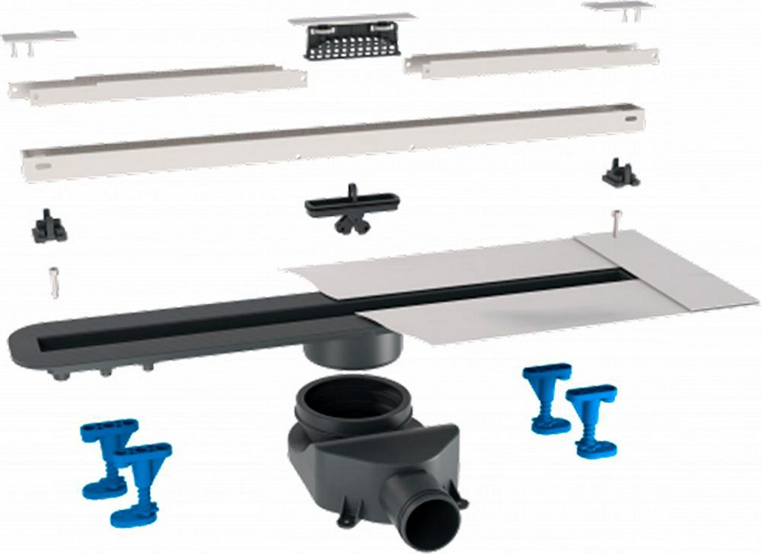 Дренажные канал, трапы Bettoserb Slim Дренажный канал 850мм, готовый компл, сифон d50 выход вбок 45л/мин, затвор сухой/гидро, ножки, ультратонккая модель, (нерж. цв.хром мат), Slim ZZ
