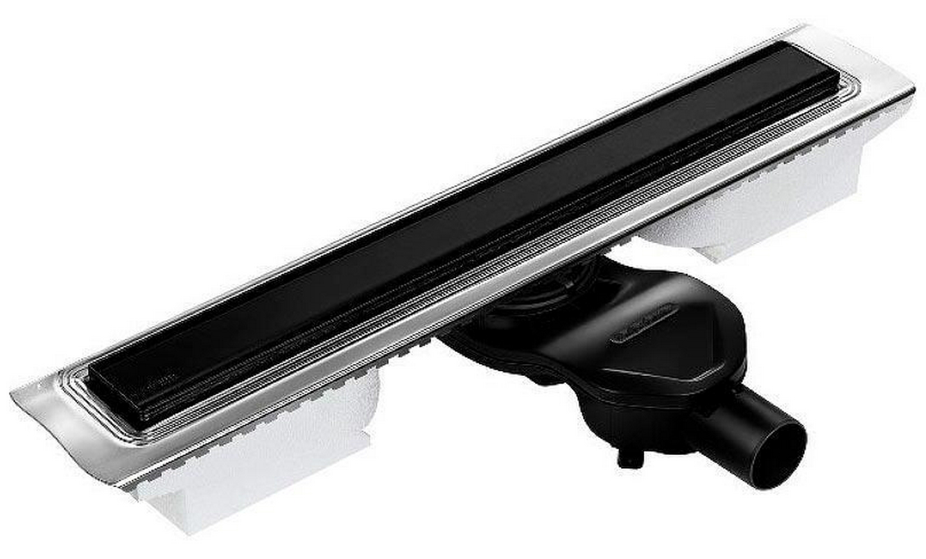 Душевой желоб 60 см, комбинированный затвор, решетка под плитку из нерж.стали, цв.черный