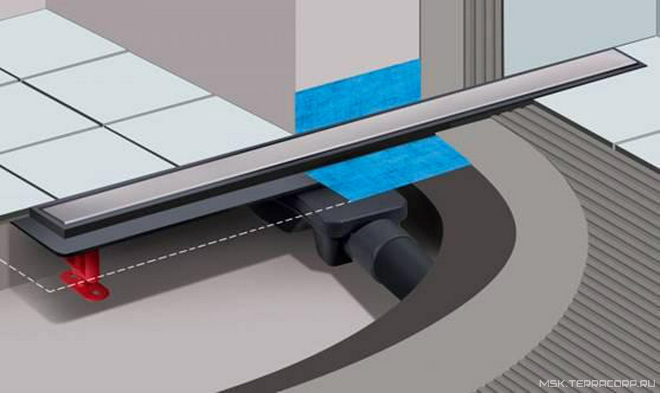 Душевой желоб 550 мм, с щелевой решеткой из нерж.стали, поворотный сифон d-50 мм, гидрозатвор затвор ZZ