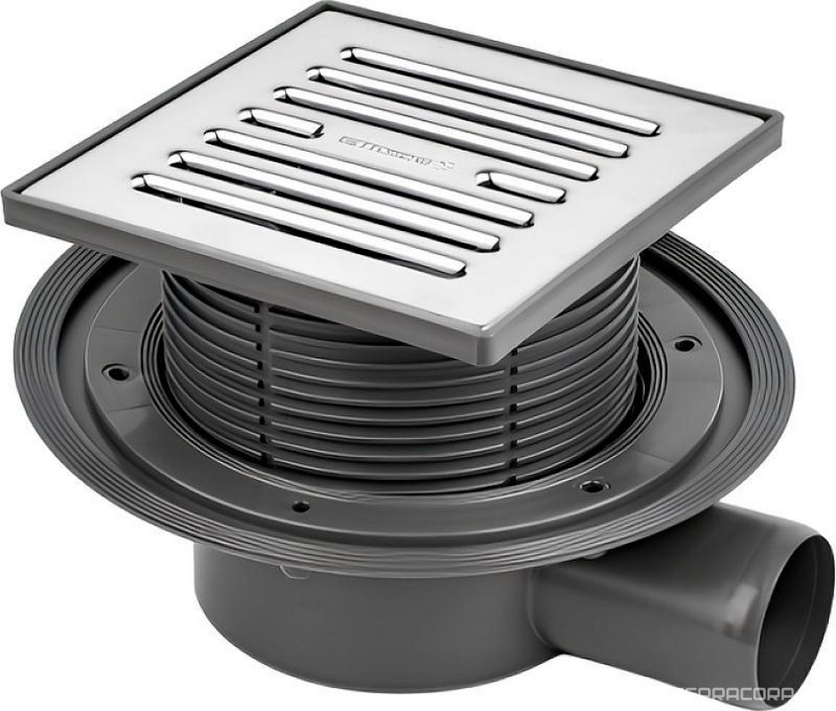 Дренажные канал, трапы Bettoserb Универсал Трап для душа, выпуск горизонт. d50мм, гидрозатвор сухой/мокрый, решетка нерж сталь 153х153мм, Bettoserb ZZ
