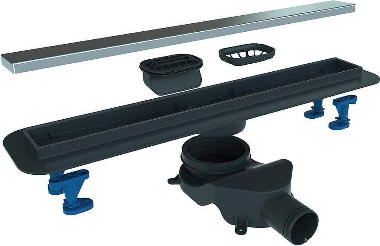 Дренажные канал, трапы BelBagno Luce Дренажный канал 700мм, готовый комплект: сифон выход вбок, сухой/гидро затвор, ножки, вставка нерж.сталь, в компл., (цв.хром матовый), Luce ZZ