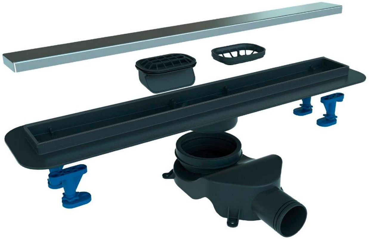 Дренажный канал 700мм, готовый комплект: сифон выход вбок, сухой/гидро затвор, ножки, вставка нерж.сталь, в компл., (цв.хром матовый), Luce ZZ