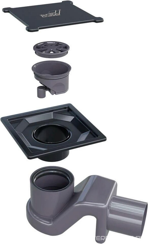 Дренажные канал, трапы RGW Walk In Трап для душа, выпуск гориз.50мм, (решетка нерж.сталь 110х110мм, цв.черный), RGW ZZ