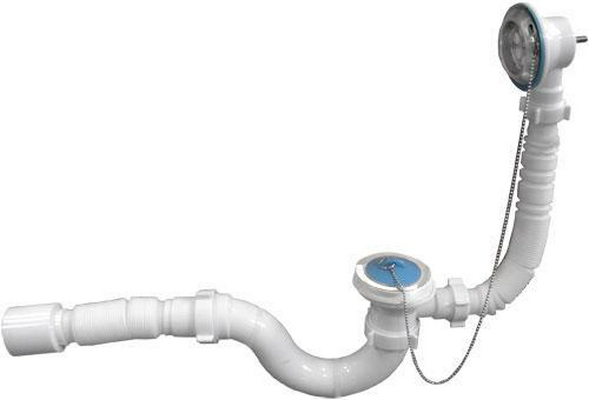 Сифон для ванны click/clack, плоский, с переливом и сеткой, гофра в компл.