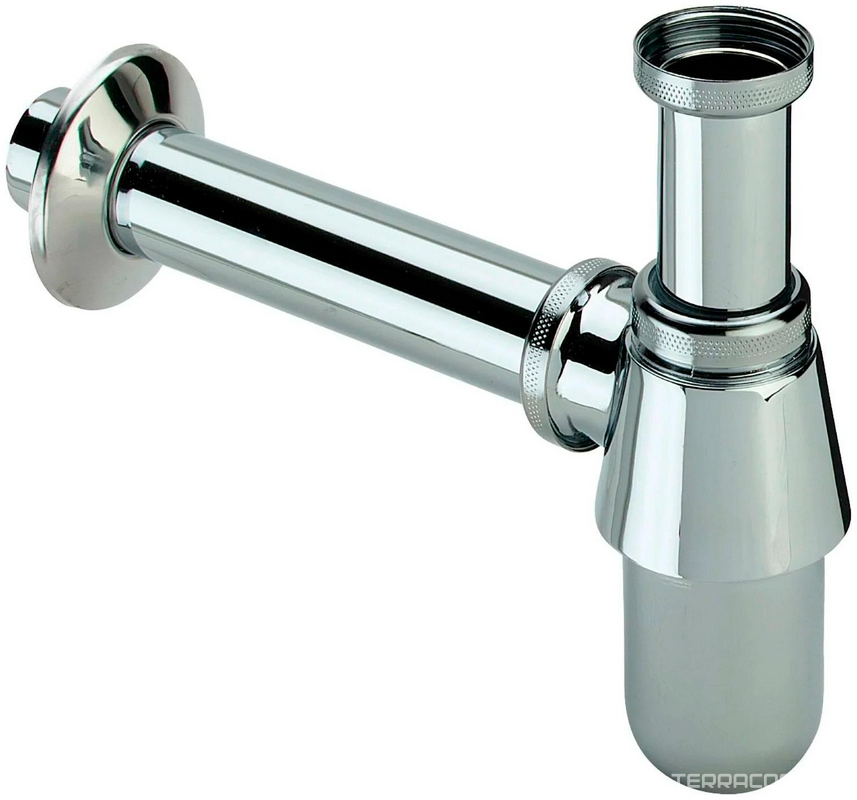 Сифон бутылочный для раковины G1 1/4*32 с отводной трубой и отражателем, хром