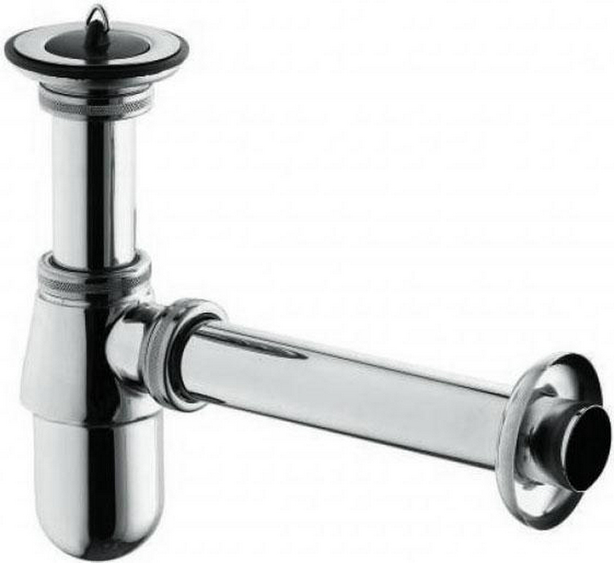 Бутылочный сифон для раковины G1 1/4*32 мм с отводной трубой 32*200 мм, отражателем и универсальным клапаном из латуни, хром XX Kludi Универсал 1011105-00