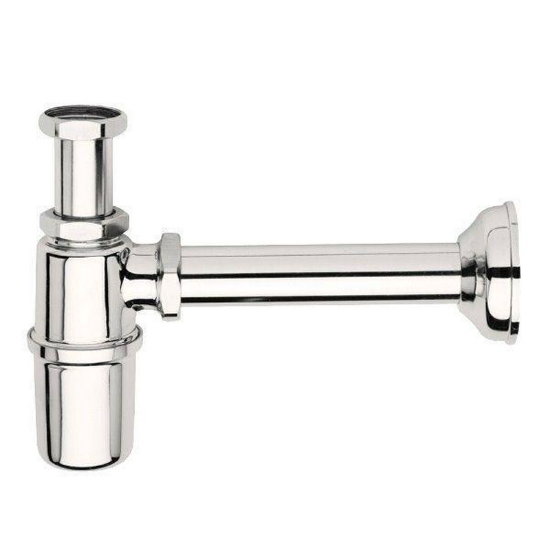 Бутылочный сифон под донный клапан Desing круглый, 32 мм с отводной трубой и отражателем, хром