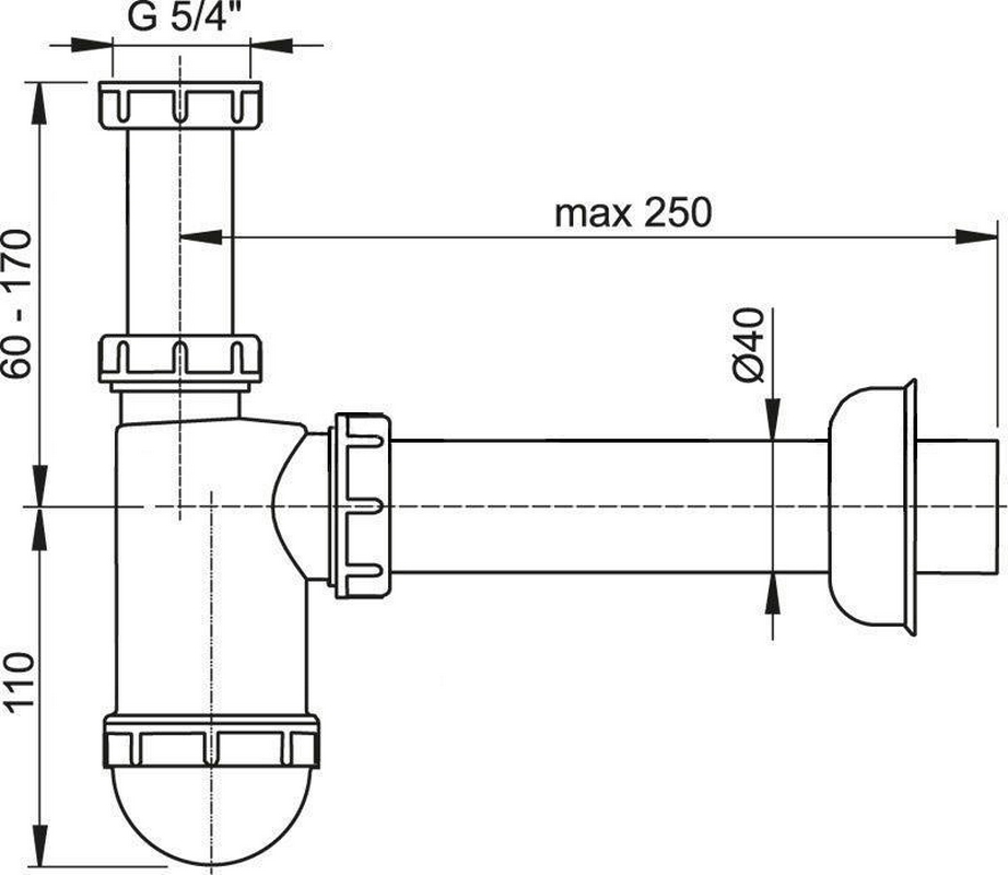 Сифон AlcaPlast Универсал Сифон для умывальника d=40, под донный клапан ZZ