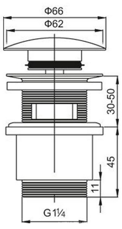 Сифон Cezares Универсал Пробка для сливного отверстия раковины, нажимная, "Click-Clack", G 1 1/4, для раковины с переливом, (цв. хром), Cezares ZZ
