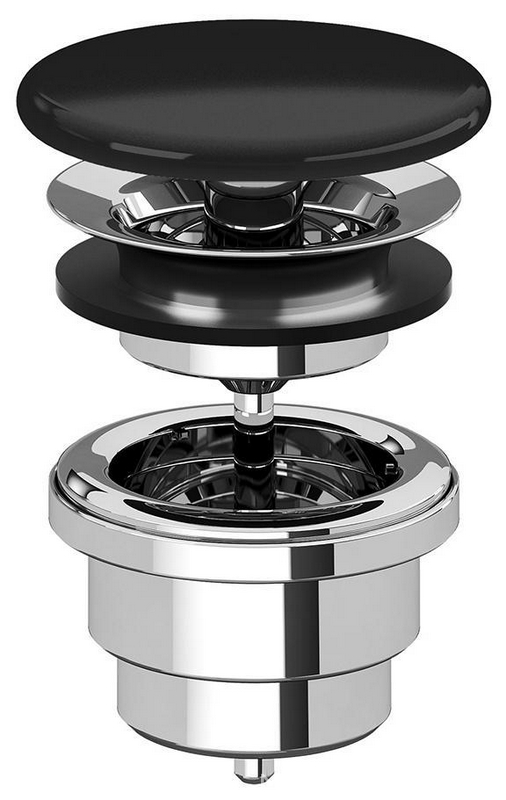 Сифон Ceramica Cielo Универсал Пробка для сливного отверстия раковины, нажимная, "Click-Clack", G 1 1/4, для раковины / биде, (цв.хром / Gloss Black), Ceramica Cielo ZZ
