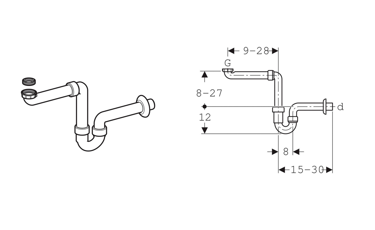 Сифон Geberit Универсал Сифон для раковины 1"1/4", для компактного подключения умывальника в мебели ванной комнаты, (пластик цв. белый), Geberit ZZ