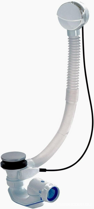 Сифон для ванны click/clack, плоский, с переливом и сеткой, гофра в компл.