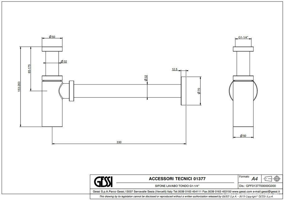 Сифон Gessi Универсал Сифон для раковины округлый, 1 1/4, (цв. Finox Brushed Nickel), Gessi ZZ