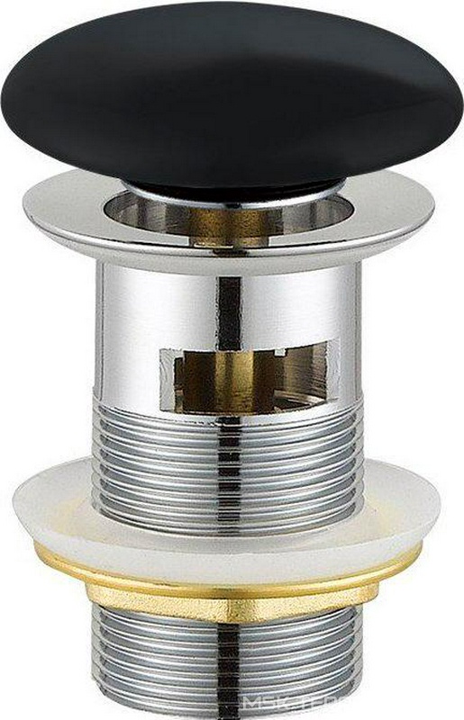 Сифон Cezares Универсал Донный клапан для сливного отверстия раковин c переливом, нажимной Clic-Clac, G 1 1/4, (металл, крышка керамика цв.черный глянец), Cezares ZZ